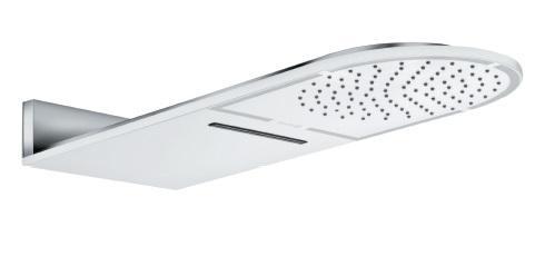 Основные характеристики: - Верхний душ - Размер: 25x60 см - Монтаж: настенный - 2 вида струи: дождь/водопад - Система против известковых отложений - Форма: нестандартная - Материал: латунь - Цвет: белый