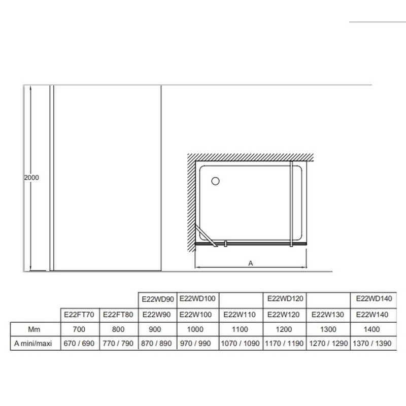 ОПЦИЯ: : Фиксированная панель 30 см . Хромированый профиль с заглушками и невидимыми крепежами . Закаленное стекло с водоотталкивающим покрытием . Регулировка по стене 20 мм