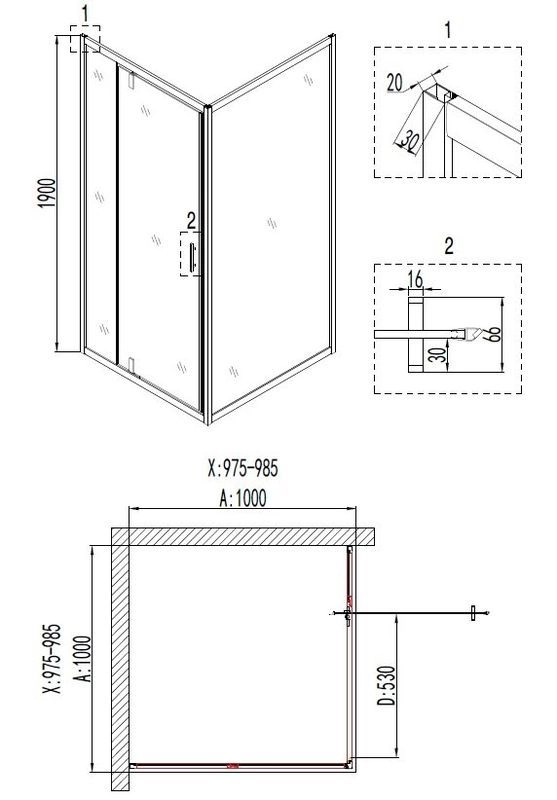 Толщина полотна двери - 6 мм.