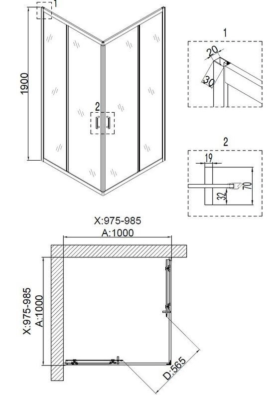 Толщина полотна двери - 6 мм.