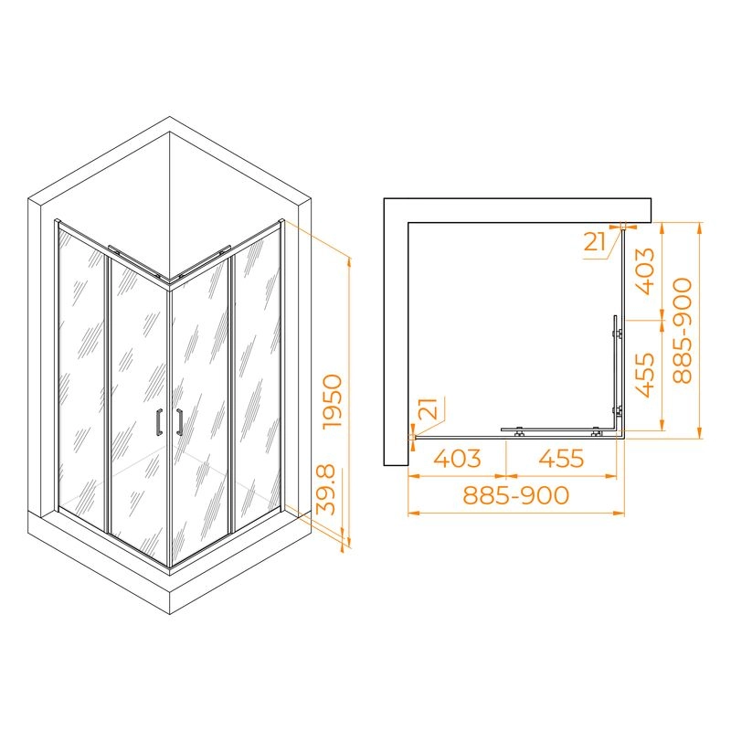 Размеры с диапазоном регулировок : (885-900)х(885-900)