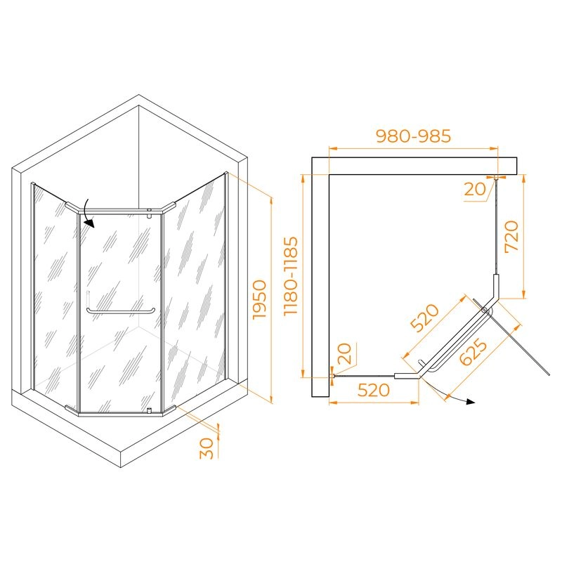 Размеры с диапазоном регулировок : (980-985)х(1180-1185)