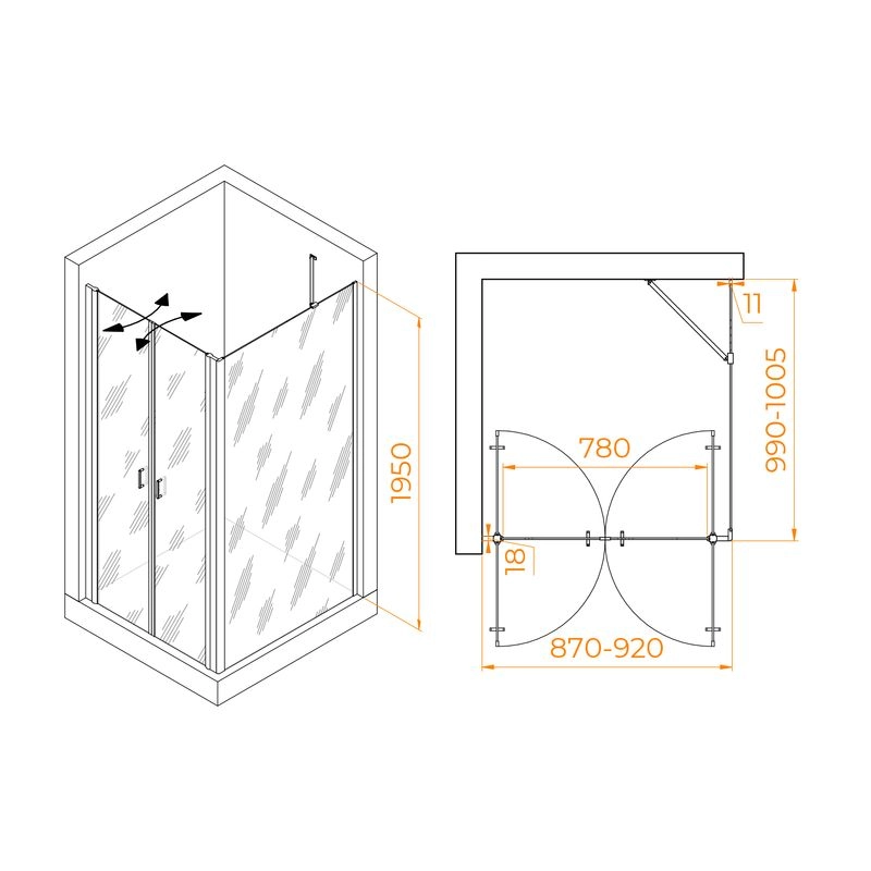 Размеры с диапазоном регулировок : (870-920)x(990-1005)
