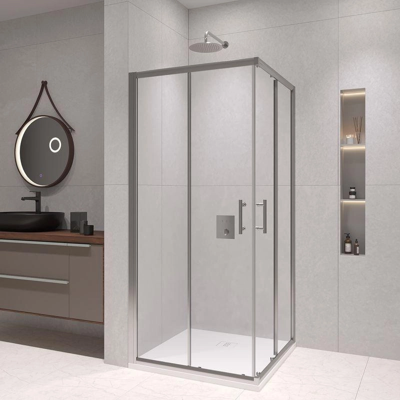 Двойные регулируемые ролики на двери душевого уголка обеспечивают плавное и безопасное движение двери, предотвращая ее случайное защемление или перекос