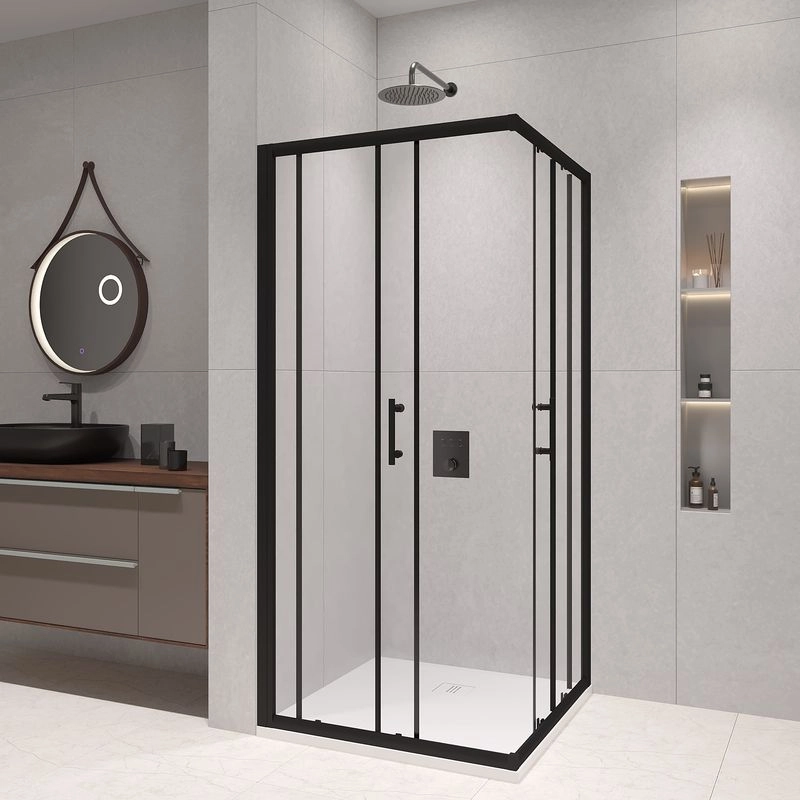 Двойные регулируемые ролики на двери душевого уголка обеспечивают плавное и безопасное движение двери, предотвращая ее случайное защемление или перекос