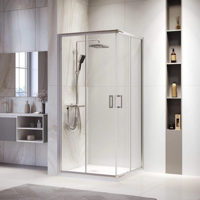 Двойные регулируемые ролики на двери душевого уголка обеспечивают плавное и безопасное движение двери, предотвращая ее случайное защемление или перекос