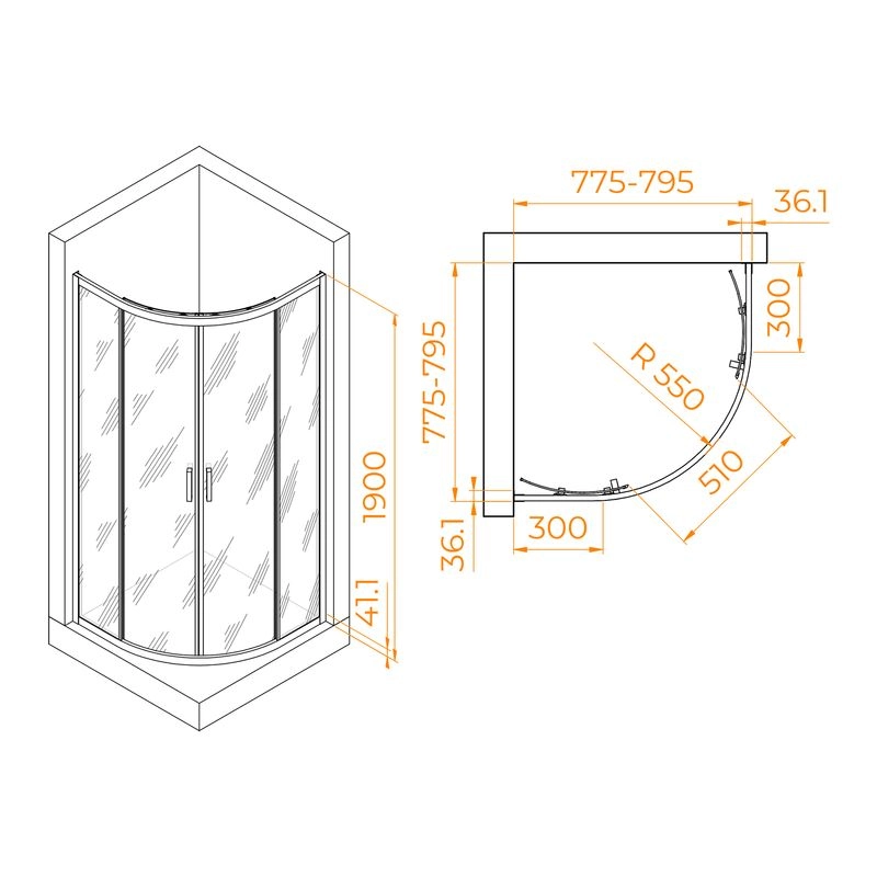 Размеры с диапазоном регулировок : (775-795)х(775-795)