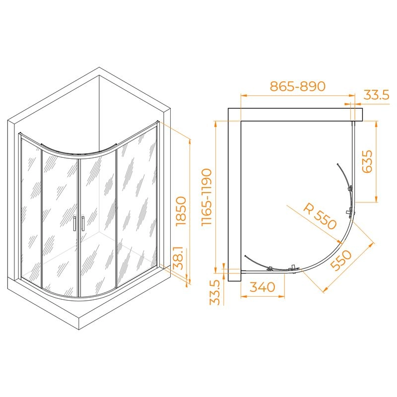 Размеры с диапазоном регулировок : (865-890)-(1165-1190)