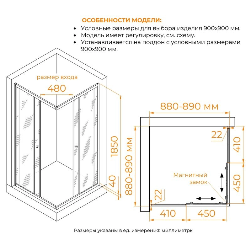 Размеры с диапазоном регулировок : (880-890)x(880-890)