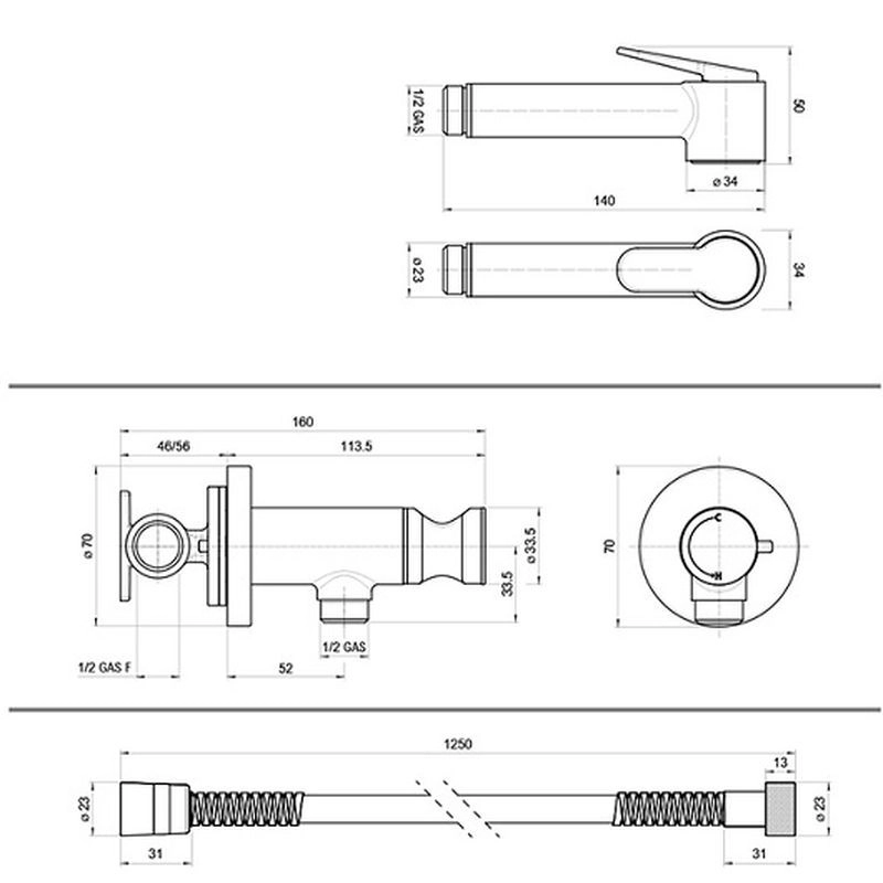 —Гигиенический душ Bossini Paloma Brass E37005B.070 со смесителем, никель