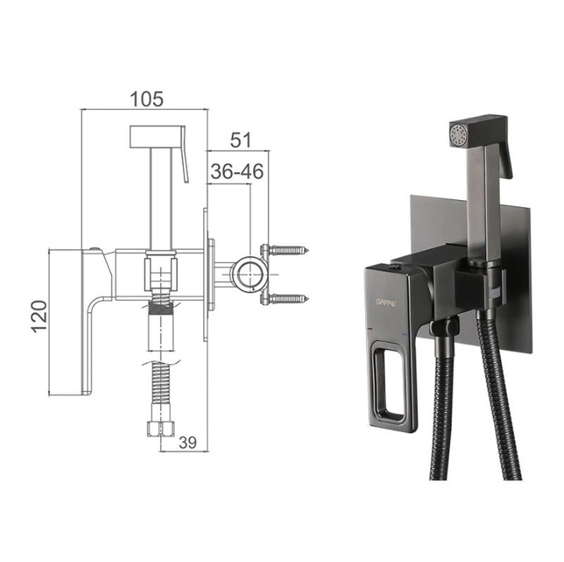 Гигиенический душ Gappo G7217-9 встроенный оружейная сталь
