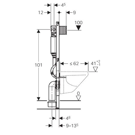 Опорная площадка поворотная, для монтажа в U-образный профиль UW 50 и UW 75. Рама подготовлена для крепления крепежных скоб для установки санфаянса с малой контактной поверхностью. Оцинкованные стойки, регулируемые в диапазоне 0 - 20 см. Стойки с защитой от скольжения. Соединительное колено монтируется на различной глубине без использования инструментов, диапазон смещения - 45 мм. Шумопоглощающее крепление для фанового отвода. Смывной бачок скрытого монтажа для смывной клавиши фронтальной установки, с противоконденсатной оболочкой. При заводской установке возможен немедленный последующий смыв. Монтаж и сервисные работы на смывном бачке скрытого монтажа не требуют использования инструментов. Подвод воды сбоку с левой стороны или сзади с левой стороны. Защитная крышка предохраняет окно технического обслуживания от влажности и загрязнений. Укорачиваемая защитная крышка окна технического обслуживания. Оснащен трубкой подвода воды для подсоединения устройств Geberit AquaClean. Объем воды для смыва, заводская установка 6 и 3 л . Большой объем воды для смыва, диапазон настройки 4,5 / 6 / 7,5 л . Малый объем воды для смыва, диапазон настройки 3-4 л. Подключение к системе водоснабжения R1/2 со встроеннымугловым запорным вентилем и ручным маховичком. Коробка монтажная для окна обслуживания. Две защитные заглушки. Комплект соединительных патрубков для унитаза, ш 90 мм. Фановый отвод из ПНД, ш 90 мм. Переходный патрубок, ш 90/110 мм. 2 резьбовые шпильки M12. Крепежные элементы.