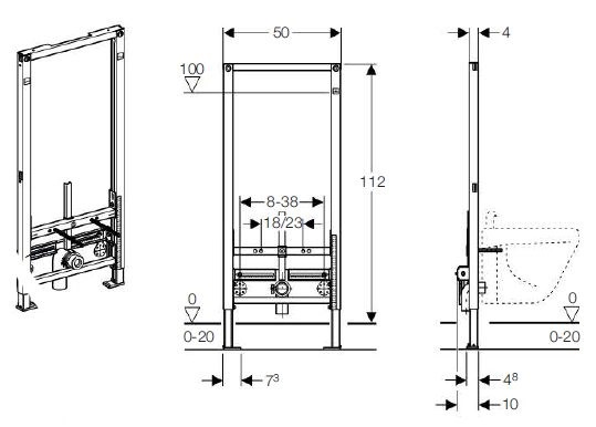 Межосевое расстояние под крепёжные шпильки биде 18 см или 23 см Рама порошковой окраски, синий ультрамарин, самонесущая конструкция Ножки оцинкованные, с бесступенчатой регулировкой 0 - 20 см Опорная площадка поворотная, для монтажа в U-образный профиль UW 50 и UW 75 Самостопорящиеся опоры для выравнивания элемента без применения инструментов. Высота монтажного элемента 112 см. Рама порошковой окраски, синий ультрамарин.В обьем поставки не входит угловые фитинги для подключения воды и крепеж к стене.