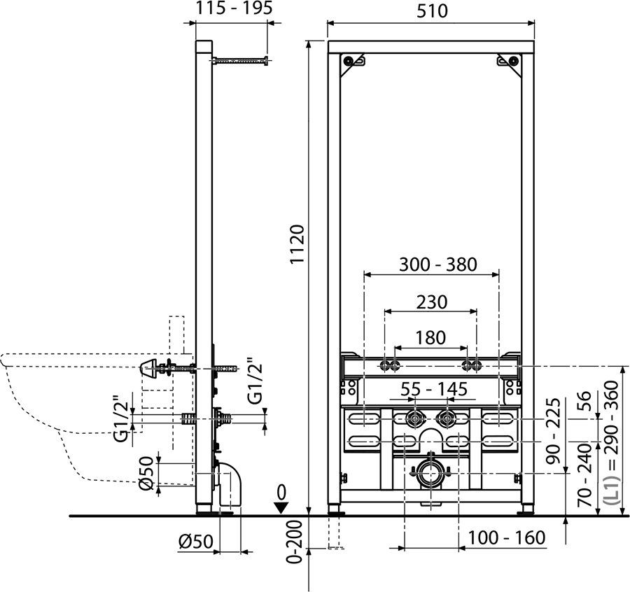 - размеры : 510 x 115 - 195 x 1120 мм