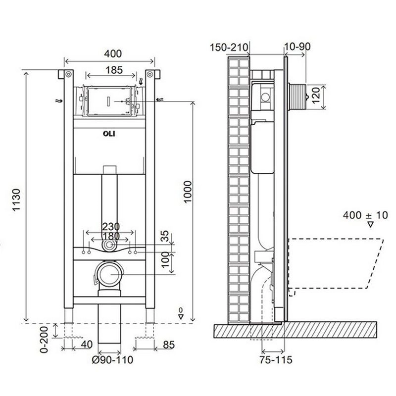В комплекте: Крепежные элементы для унитаза; Крепежные элементы для рамы; Комплект соединительных патрубков для унитаза; Фановый отвод для слива и переходник ø90/110; G1/2” запорный клапан.