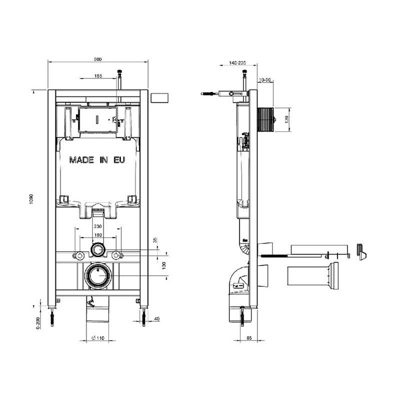 коленное соединение для унитаза, ПВХ, D 10 см. РАЗМЕРЫ :50 x 17 см ВЕС :16 кг УСТАНОВКА : Напольные РАСХОД ВОДЫ: 2,6/4 л и 3/6 л ВЫСОТА: Стандартные ВЫПУСК: Горизонтальный выпуск ГАРАНТИЯ НА СИСТЕМУ ИНСТАЛЛЯЦИИ: : 10 лет УПАКОВКА: : Единая упаковка Полностью оснащенный бачок с механизмом экономии воды на 3/6 л, металлические крепления, монтажный набор в комплекте.