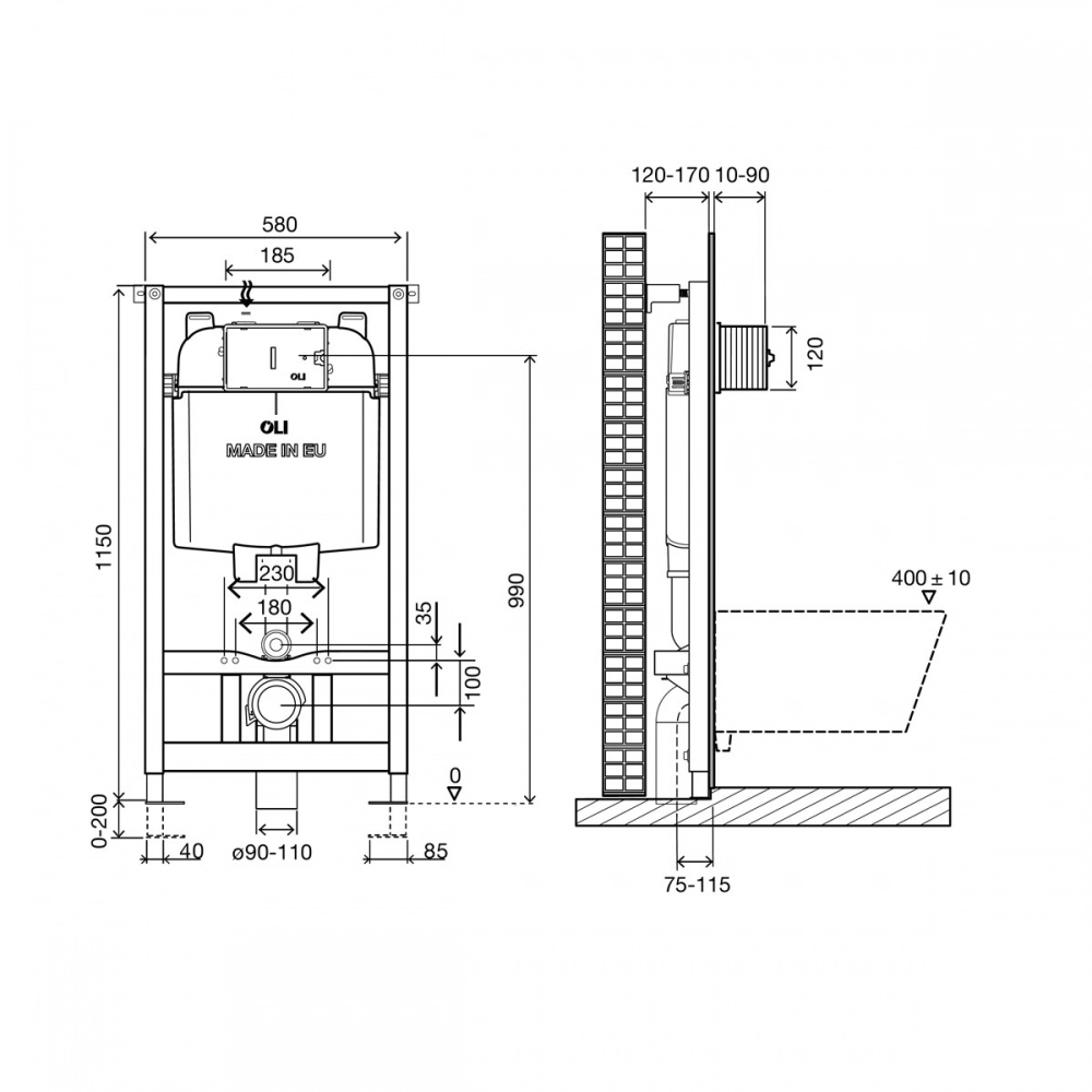 - Совместима со всеми видами подвесных унитазов