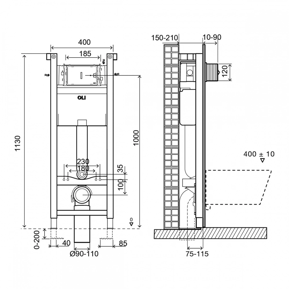 - Совместима со всеми видами подвесных унитазов