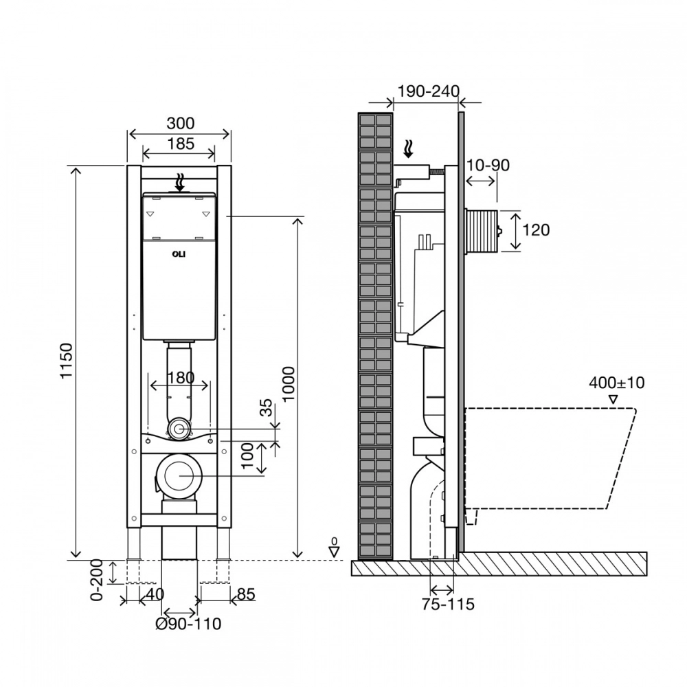 - Совместима с моделями подвесных унитазов с расстоянием между креплениями 180мм