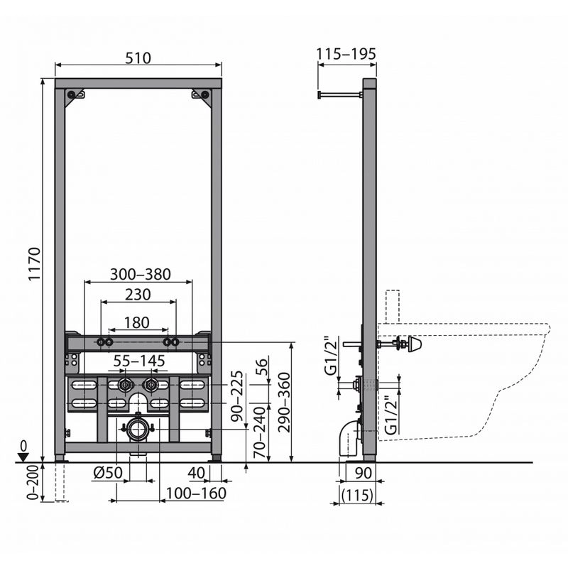 Для подвесного биде с интервалом крепления 180 мм или 230 мм.