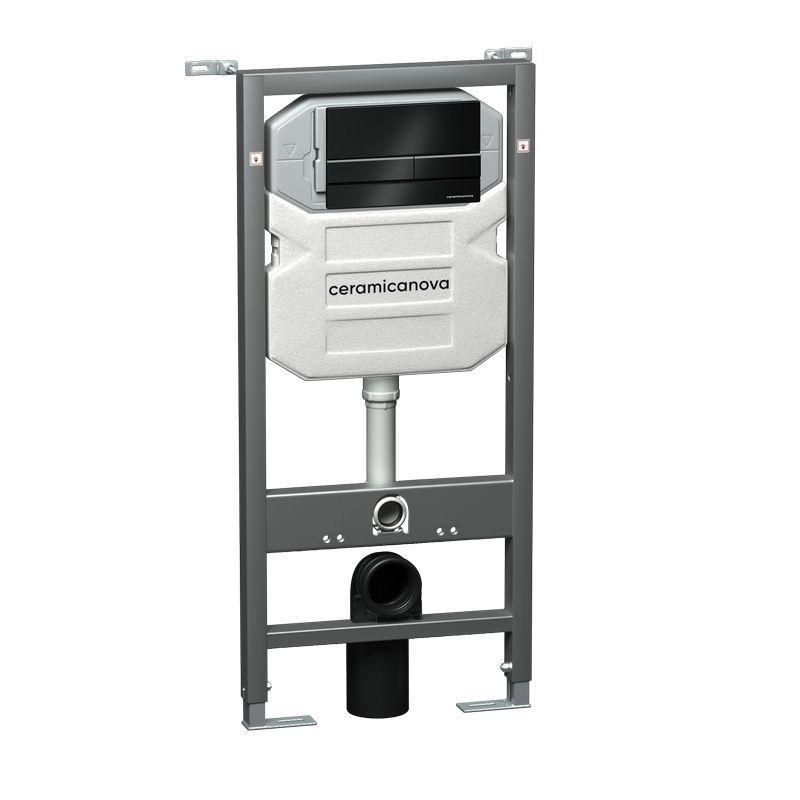 Сет 4 в 1: Подвесной унитаз Metric Rimless арт. CN3007 + Шумоизоляционная панель для инсталляции арт. CN1000 + Система инсталляции для унитазов CERAMICANOVA Envision с кнопкой смыва Flat цвет черный матовый, креплениями, арт. CN1002B