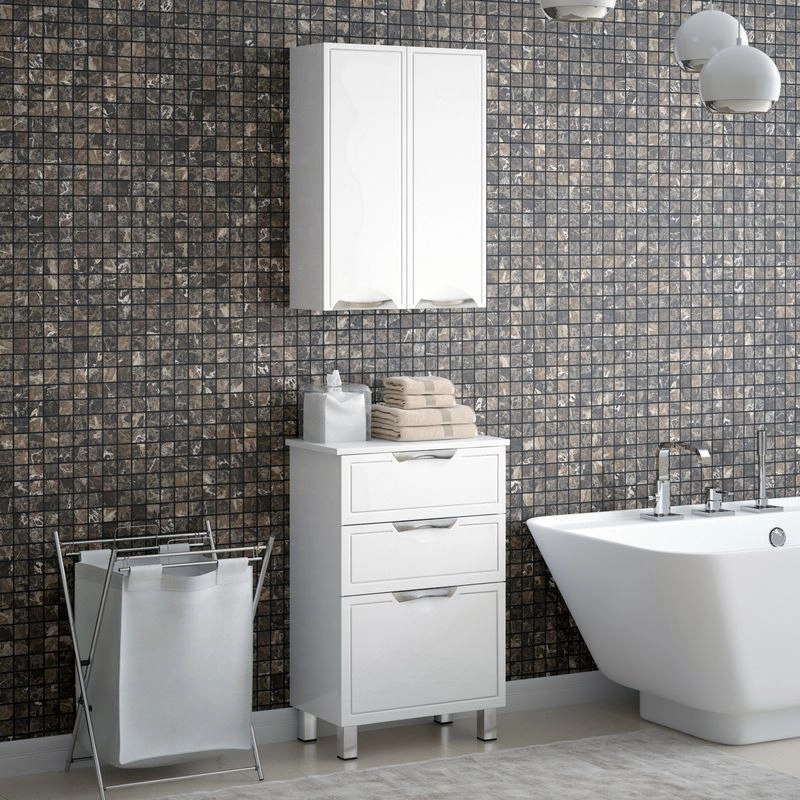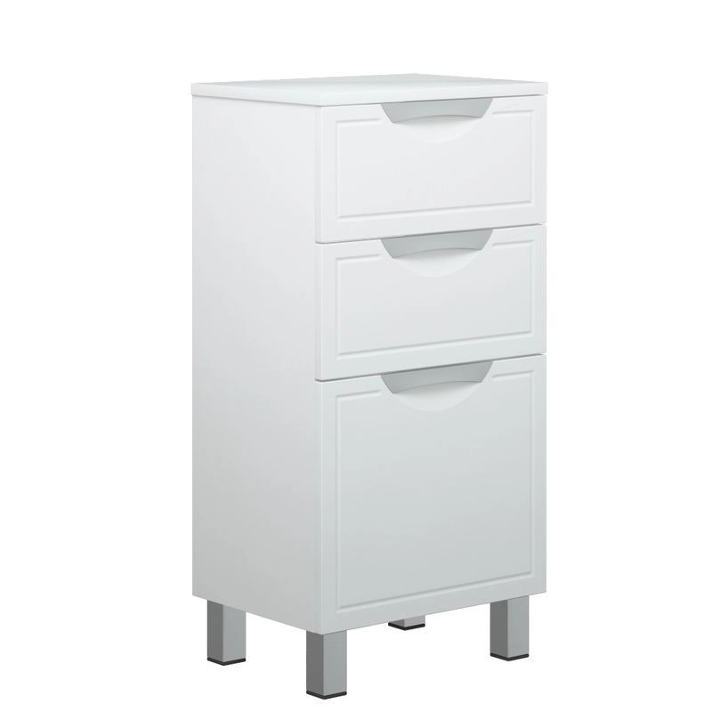 У комода Монро 40 Z3 3 выдвижных ящика. Высота верхних двух ящиков - 110 мм, нижнего - 250 мм. У комода 4 металлические опоры. Крышка и фасады - МДФ в плёнке.
