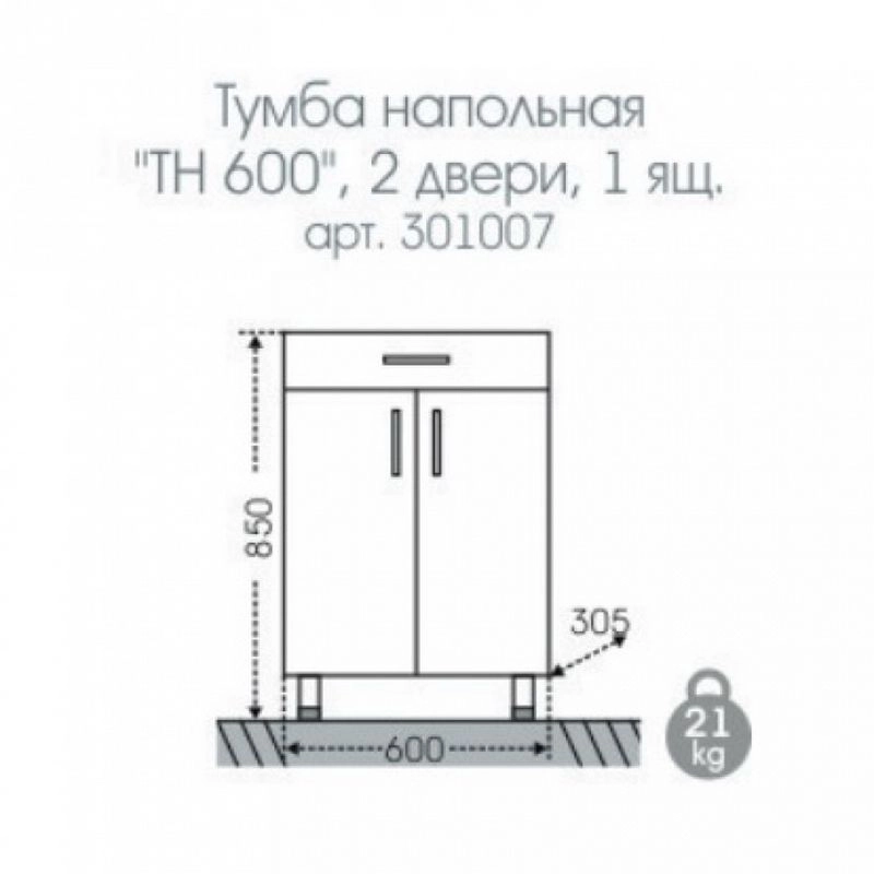 Тумба СаНта Стандарт 60 301007 напольная Комплектация: Ручка - 3 шт, регулируемая ножка - 4 шт, полочка (закрепленная) — 1шт. На дверках петли плавного закрывания