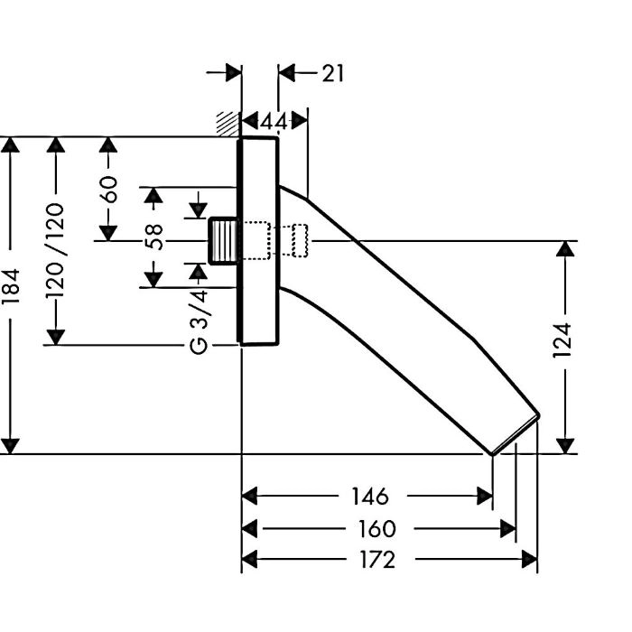 выступ 160 мм расход воды: 25 л/мин тип струи: обычная струя