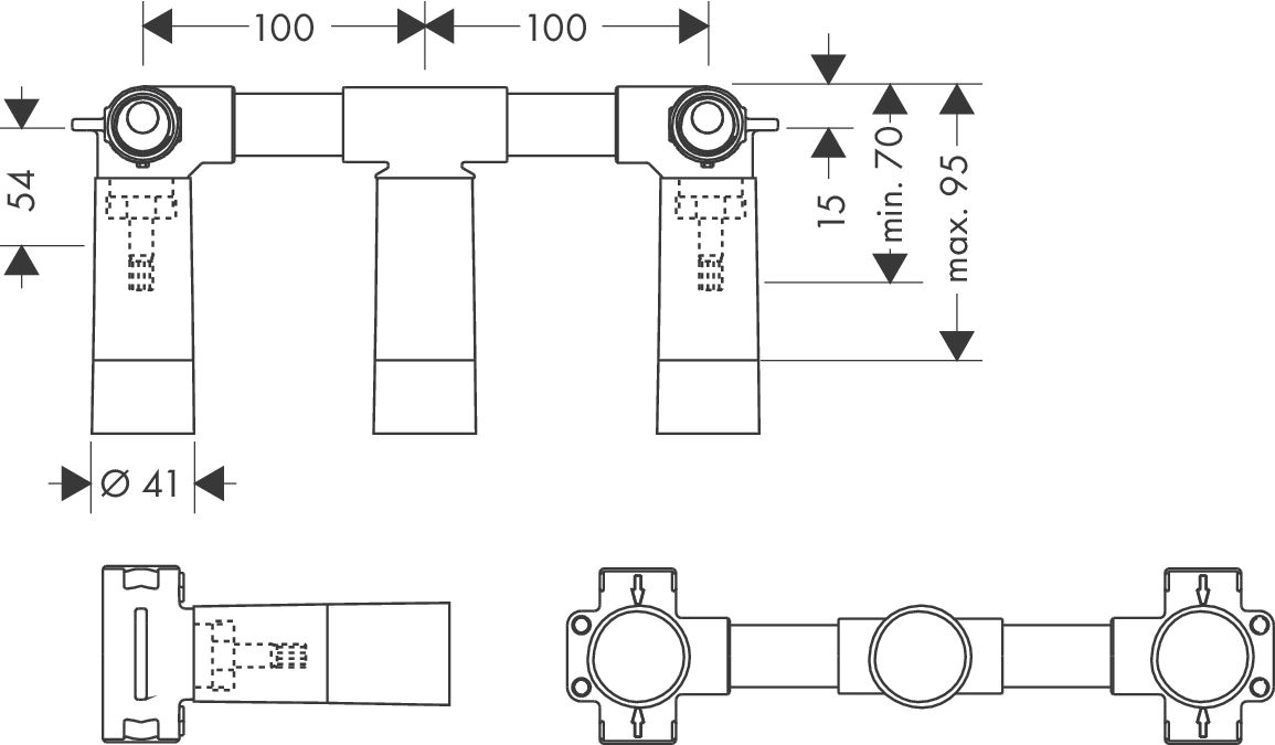подходит для все смесители на три отверстия для настенныйого монтажа соединение с верхней или с нижней стороны