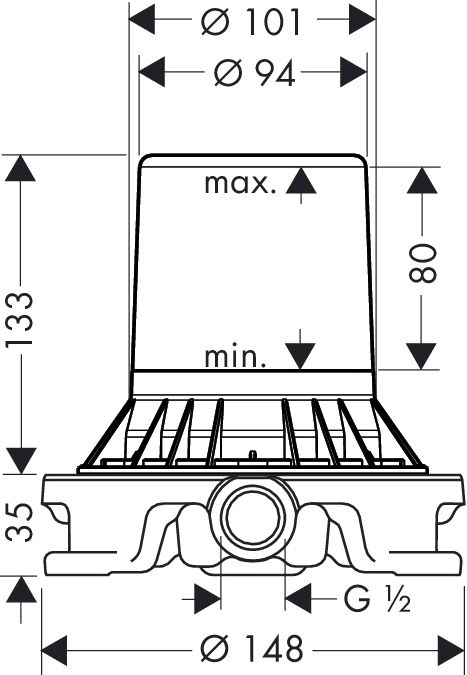 для монтажа на черновой пол подходит для всех готовых наборов для напольных смесителей для ванны, кроме Axor Montreux класс шума: I