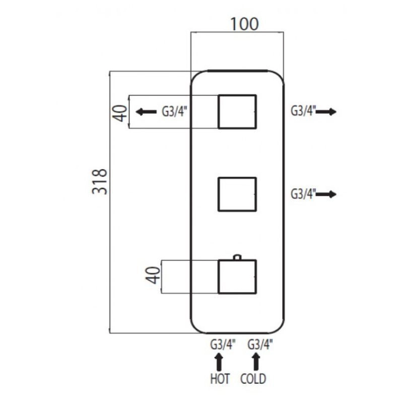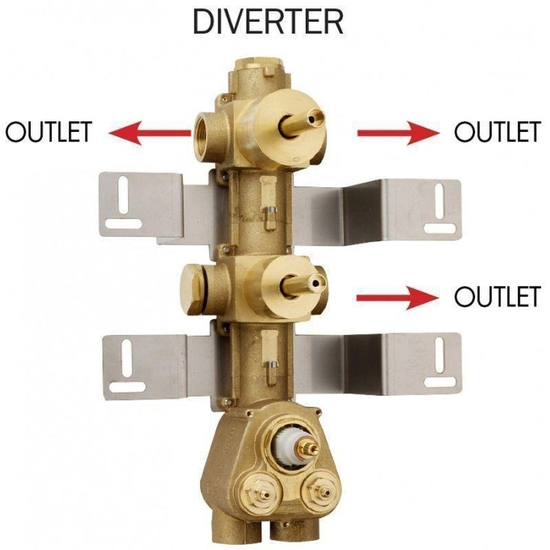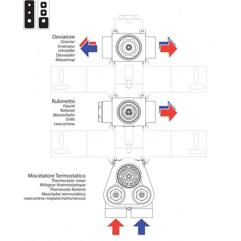 Bossini Z030203000 Встраиваемая часть термостата для душа и ванны на 3 выхода. Встраиваемая термостатическая часть смесителя высокой пропускной способности с переключателем на 3 выхода с одним вентилем открыто-закрыто и переключателем на 2 выхода. Подключение 3/4” F