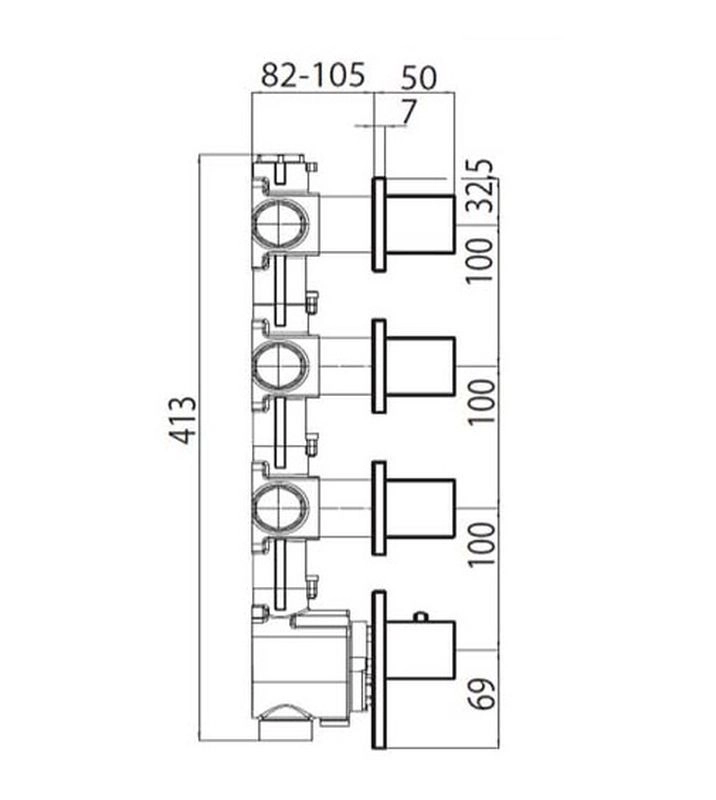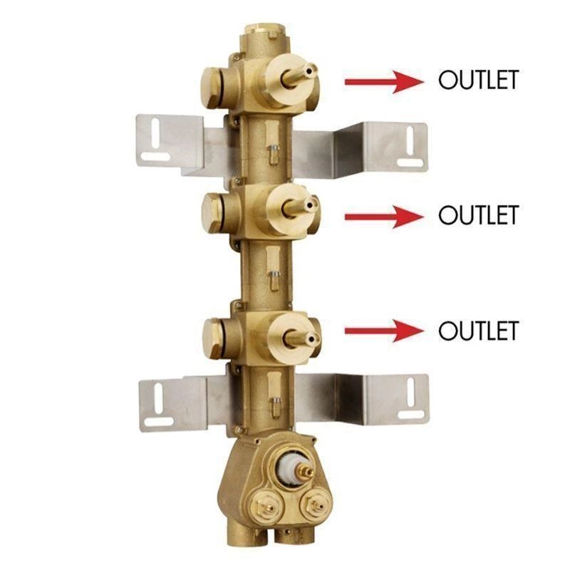 Bossini Z030202000 Встраиваемая часть термостата для душа и ванны на 3 выхода. Встраиваемая термостатическая часть смесителя высокой пропускной способности на 3 выхода с тремя вентилями открыто-закрыто. Подключение3/4” F. Установка горизонтальная или вертикальная.