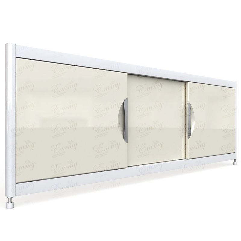 мм : 520х1195х37.Каркас экрана выполнен из алюминиевого профиля, дверки изготовлены из МДФ и покрыты ПВХ пленкой толщиной 0,45 мм. Экран имеет 3 раздвижных створки. Алюминиевый профиль окрашен порошковой краской белого цвета и собирается на замках, что позволяет дополнительно регулировать экран по высоте. К боковым стойкам возможен монтаж торцевых панелей. Высота экрана 500 мм+ножки 20 мм. Ножки регулируются на 100 мм.
