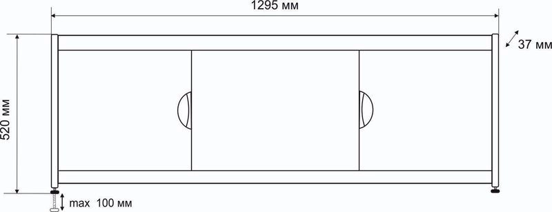 мм : 520х1295х37.Каркас экрана выполнен из алюминиевого профиля, дверки изготовлены из МДФ и покрыты ПВХ пленкой толщиной 0,45 мм. Экран имеет 3 раздвижных створки. Алюминиевый профиль окрашен порошковой краской белого цвета и собирается на замках, что позволяет дополнительно регулировать экран по высоте. К боковым стойкам возможен монтаж торцевых панелей. Высота экрана 500 мм+ножки 20 мм. Ножки регулируются на 100 мм.