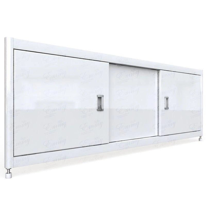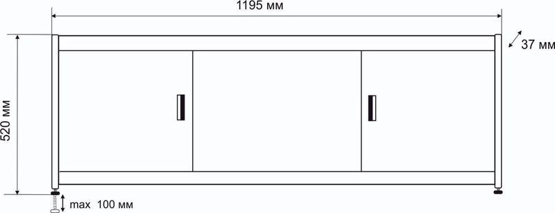 мм : 520х1195х37.Каркас экрана выполнен из алюминиевого профиля, дверки изготовлены из МДФ и покрыты ПВХ пленкой толщиной 0,45 мм. Экран имеет 3 раздвижных створки. Алюминиевый профиль окрашен порошковой краской белого цвета и собирается на замках, что позволяет дополнительно регулировать экран по высоте. К боковым стойкам возможен монтаж торцевых панелей. Высота экрана 500 мм+ножки 20 мм. Ножки регулируются на 100 мм.