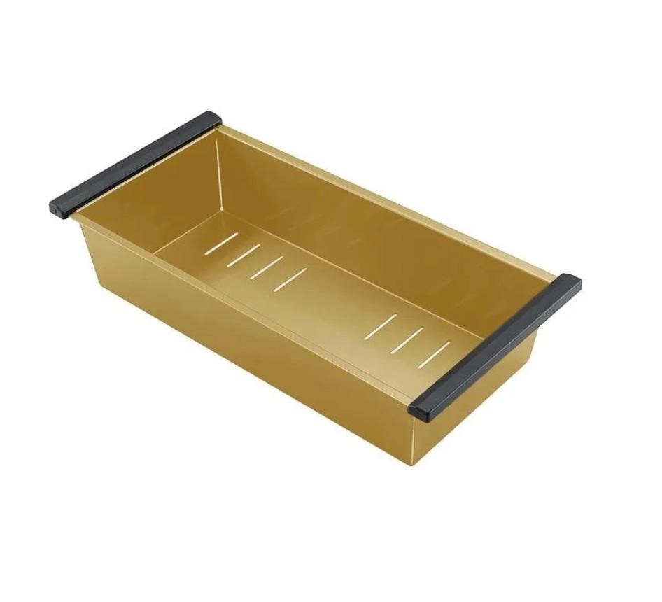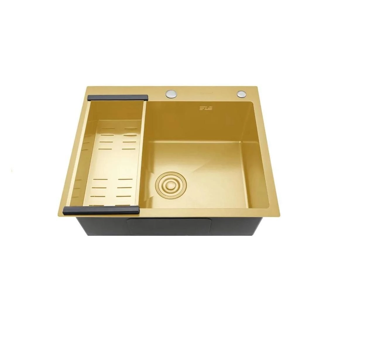 Врезная мойка для кухни Gappo GS5050-3 из нержавеющей стали в цвете золотой сатин – это функциональное и стильное решение для вашей кухни. Изготовленная из высококачественной нержавеющей стали, мойка обладает долговечностью и прочностью, что гарантирует долгий срок службы.Мойка имеет большую глубину чаши 215 мм, что позволяет легко справляться с мытьем посуды и габаритных предметов. Гладкие и обтекаемые формы мойки обеспечивают комфорт при использовании.Анти-конденсационное покрытие мойки защищает шкаф от влаги, предотвращая его порчу. Мойка оснащена отверстием под смеситель и коландером, что делает ее еще более функциональной. В коландере можно размораживать мясо, складывать приборы после мойки и мыть продукты (овощи, фрукты, ягоды, зелень).Мойка имеет квадратную форму и выполнена в золотистом цвете с сатиновой поверхностью, что придает ей современный и стильный вид. Врезная мойка Gappo – это сочетание функциональности, стиля и долговечности, которое сделает вашу кухню еще удобнее и приятнее.