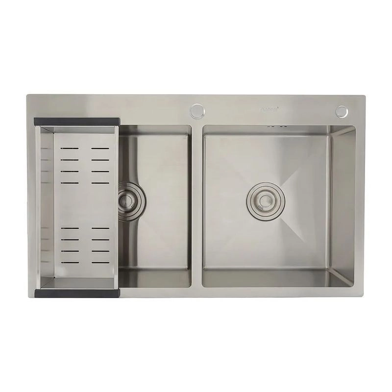 Толщина стали в верхней части – 3 мм, толщина стенок чаши – 0,8мм. Кухонная мойка Gappo имеет PVD-покрытие обеспечивающее защиту от царапин и химических средств. Кухонная раковина Gappo имеет гладкую поверхность. Универсальный тип установки позволяет ее монтировать на столешницу сверху или под нее. Мойка оснащена коландером в котором можно мыть овощи и фрукты.