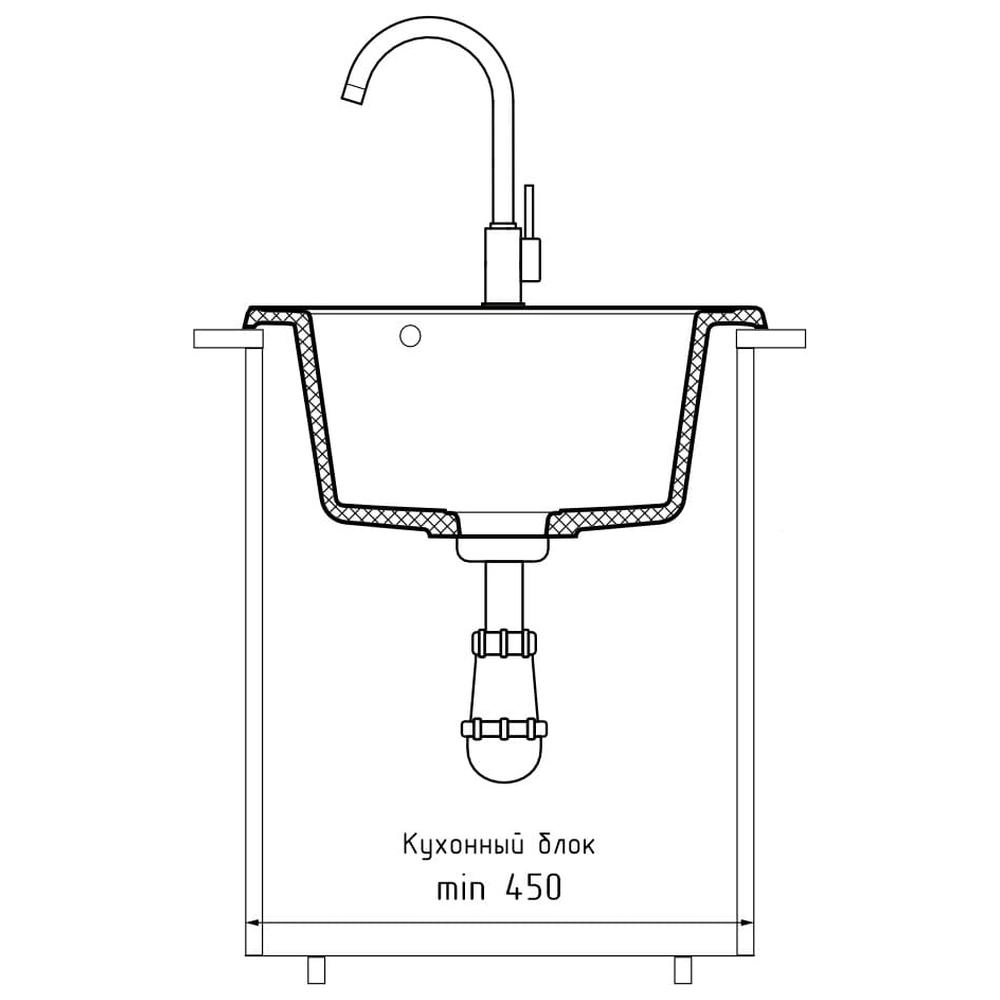 Кухонная мойка GranFest QUARZ 8, серый. Для кухонного шкафа 45 см. Материал — кварцевый композит. Производство: Россия. Гарантийный срок: 3 года.