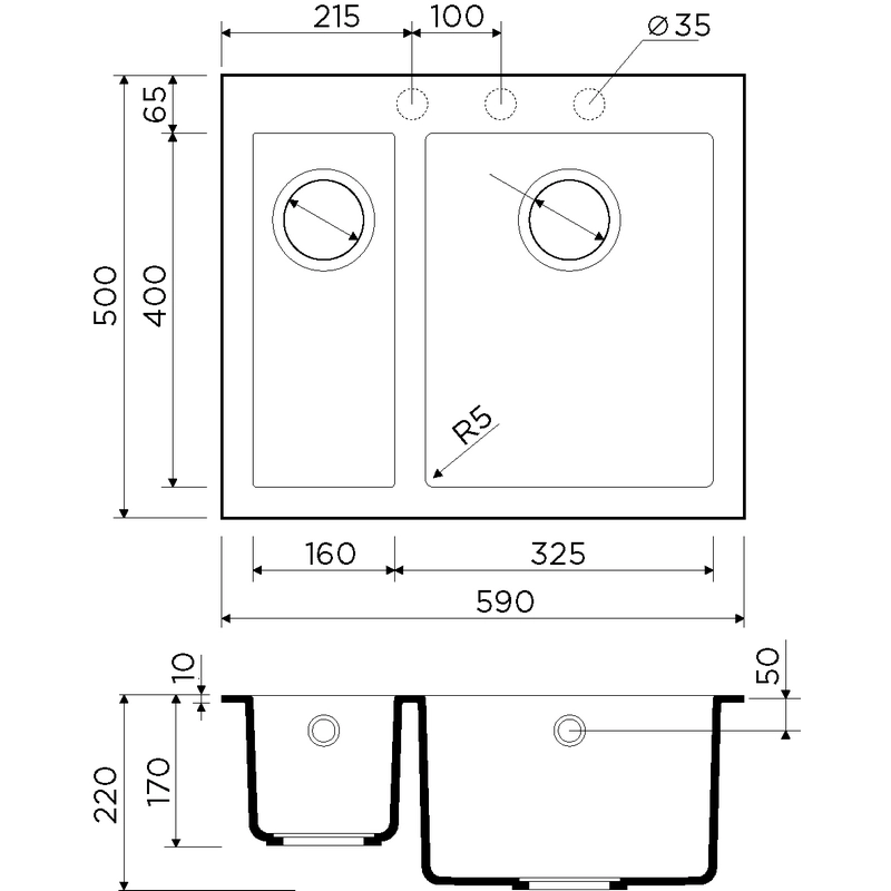 • Мойка черного цвета создана из материала «Tetogranit Metal». В его составе: акриловая смола и натуральный гранит с добавлением металлических частиц, которые придают блеск и мерцание поверхности мойки. «Tetogranit Metal» отличается максимальной устойчивостью к температурным перепадам, ударам, царапинам и пятнам;