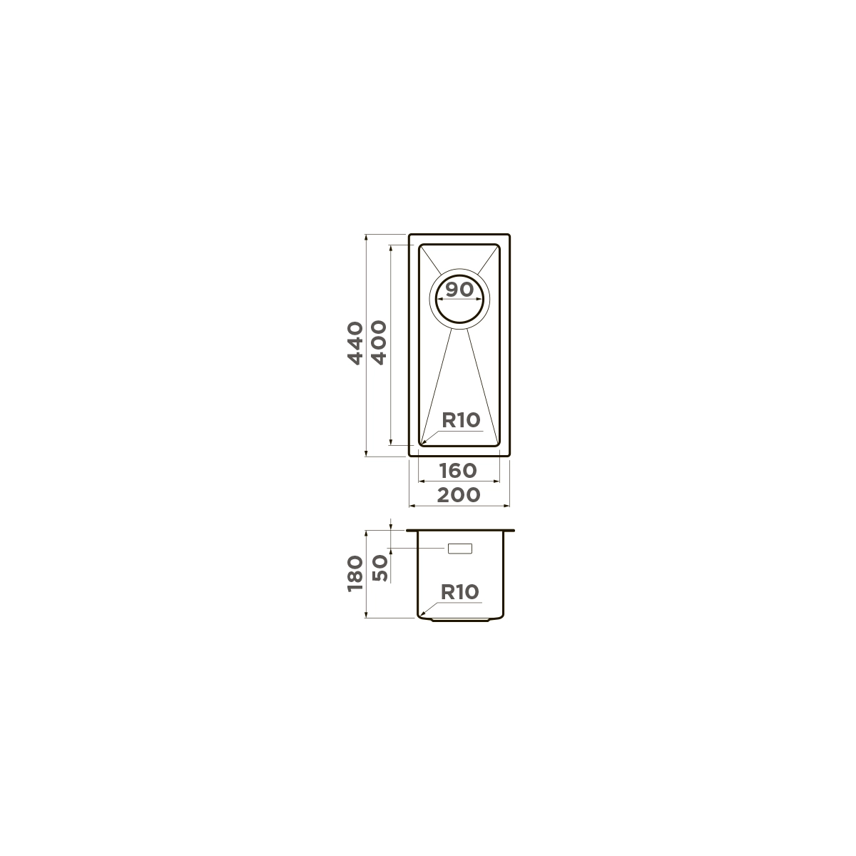 Размер основной чаши 160*400*180
