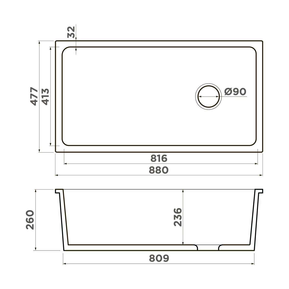 Размер основной чаши 816*413*236