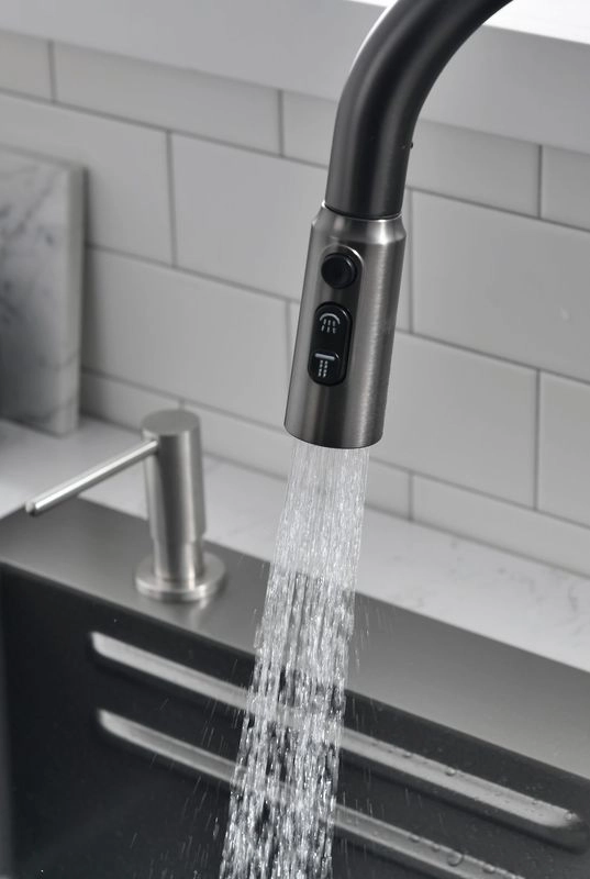 10. Вытягивающийся 2-х режимный излив смесителя с цилиндрической головкой;