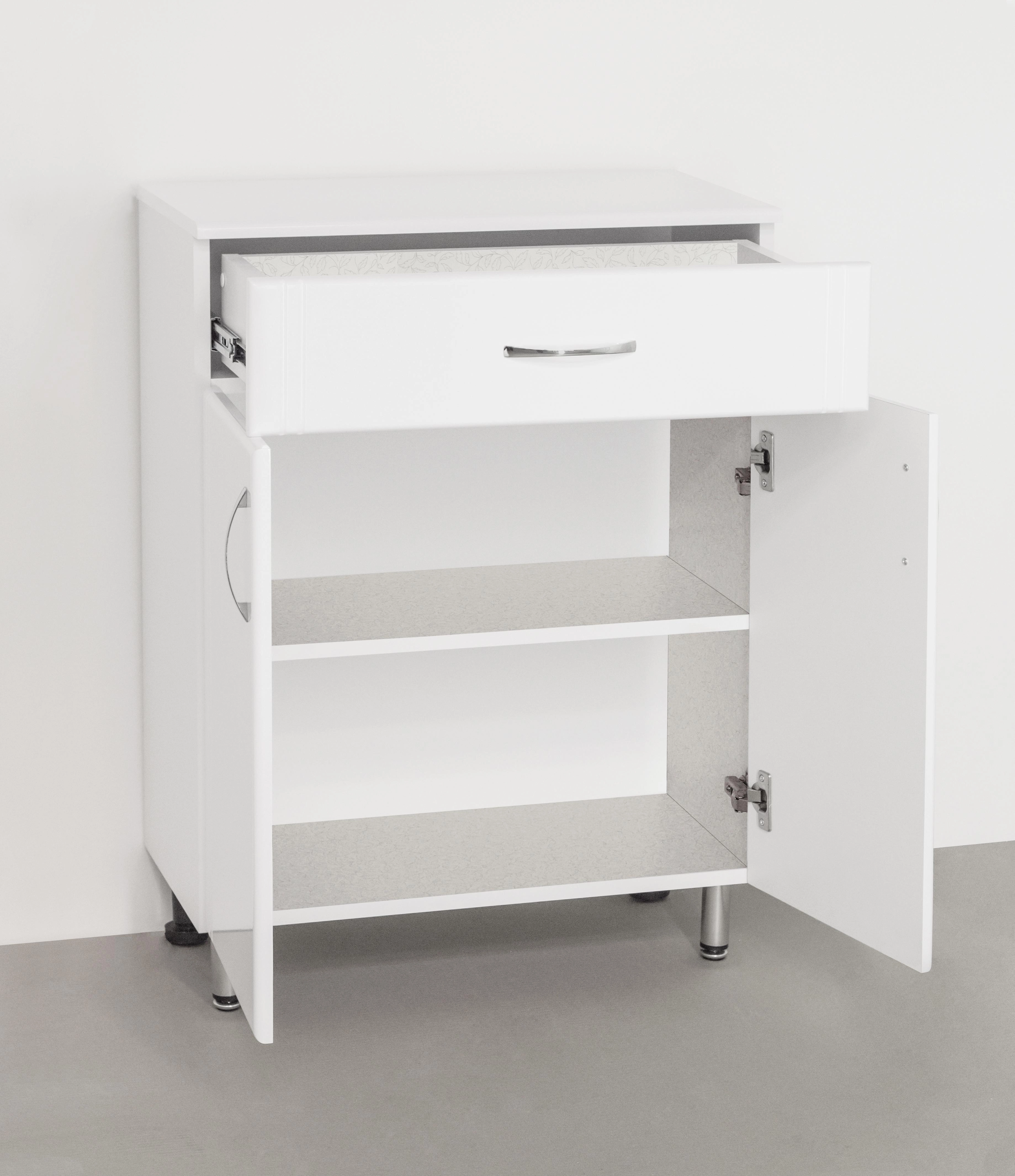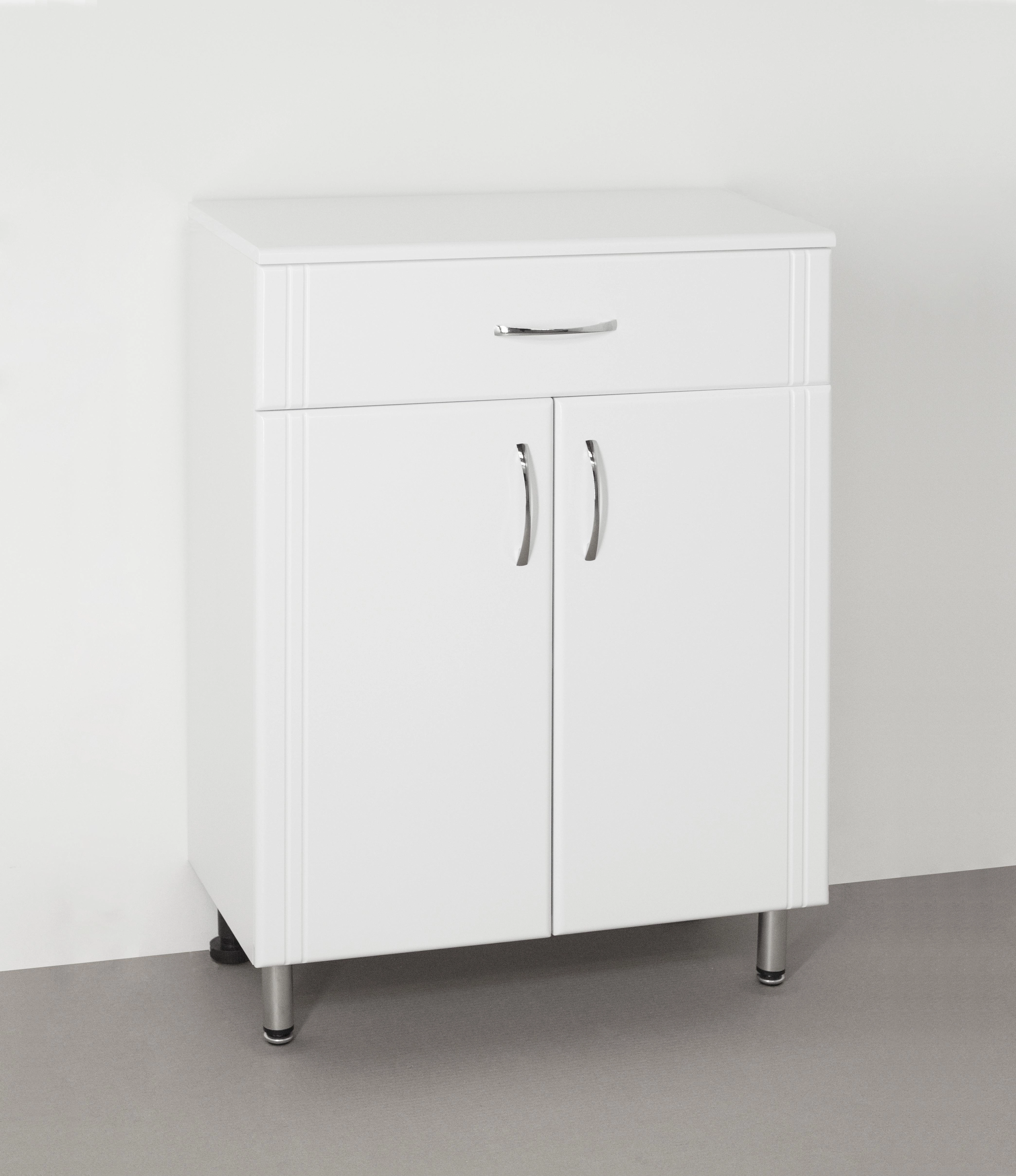1. Вся мебель изготовлена на оборудовании производства Германии, Австрии, Италии 2. При изготовлении мебели для ванных комнат Style line используют только качественные влагостойкие материалы 3. Корпус изделий изготовлен из влагостойкой ДСП 16 мм, торцы деталей корпуса обработаны кромкой ПВХ толщиной 0,4 мм, фасады мебели изготовлены из МДФ толщиной 16 мм производства завода "Кроношпан" - ведущего российского производителя МДФ и ДСП 3. Все материалы, используемые нами при производстве мебели, имеют сертификаты соответствия 4. Для приклеивания пленки ПВХ на лицевую сторону элементов используется однокомпонентный клей производства Италии, а это значит, что исключена вероятность нарушения консистенции клея, и, следовательно, снижения качества приклейки пленки 5. Для наших изделий мы используем фабричную фурнитуру лучших производителей, покрытую антикоррозийным составом, что позволяет эксплуатировать ее в агрессивной влажной среде ванных комнат 6. Производственный цикл построен таким образом, что вся мебель проходит контроль качества на каждом этапе производства, что сводит к минимуму вероятность возникновения производственного брака Комод бренда "Style Line" Эко Стандарт 600 с одним ящиком. Фурнитура - хром, эксклюзивный декор "Луино" - ламинация внутренней стороны изделия. Все материалы полностью влагостойкие