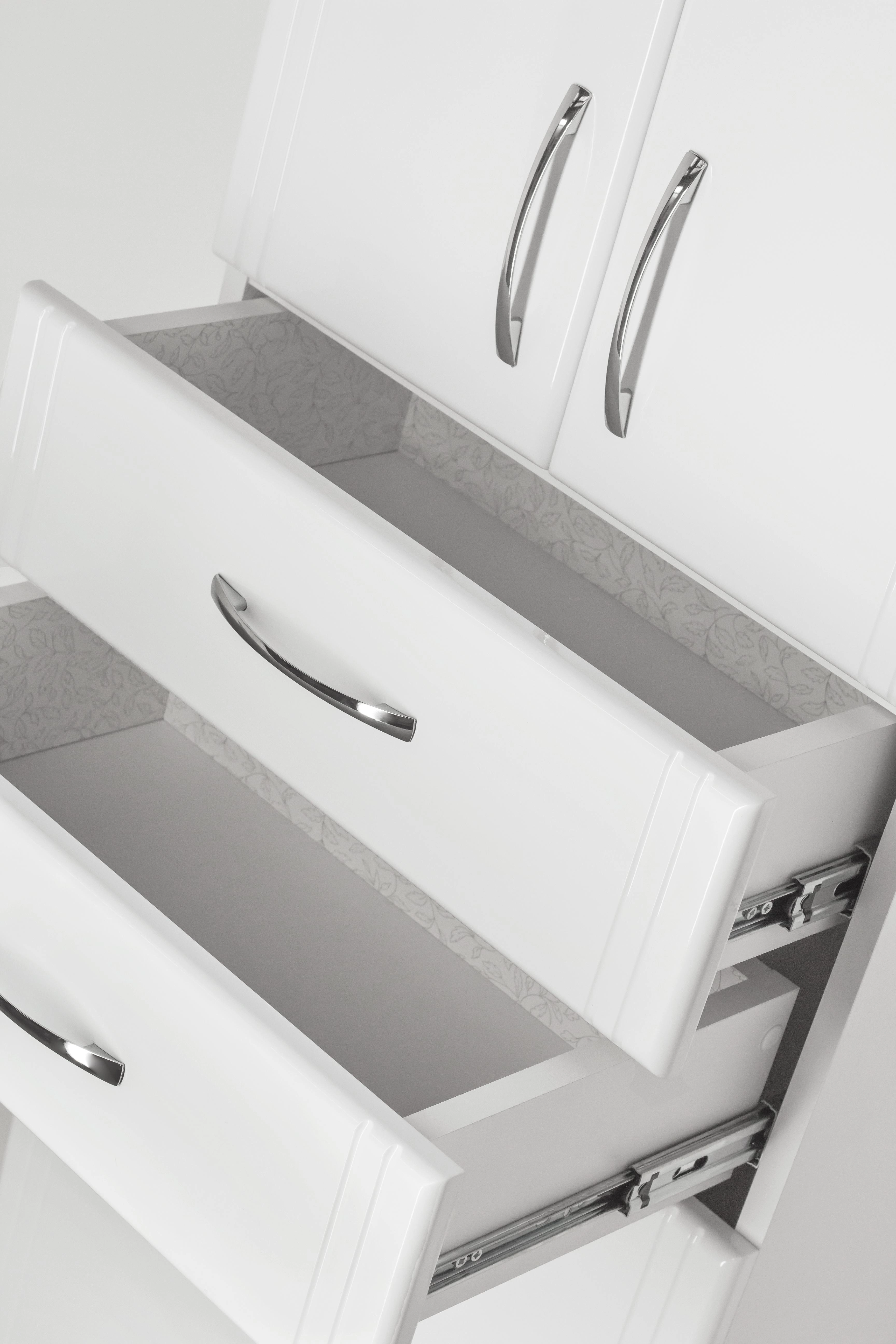 1. Вся мебель изготовлена на оборудовании производства Германии, Австрии, Италии 2. При изготовлении мебели для ванных комнат Style line используют только качественные влагостойкие материалы 3. Корпус изделий изготовлен из влагостойкой ДСП 16 мм, торцы деталей корпуса обработаны кромкой ПВХ толщиной 0,4 мм, фасады мебели изготовлены из МДФ толщиной 16 мм производства завода "Кроношпан" - ведущего российского производителя МДФ и ДСП 3. Все материалы, используемые нами при производстве мебели, имеют сертификаты соответствия 4. Для приклеивания пленки ПВХ на лицевую сторону элементов используется однокомпонентный клей производства Италии, а это значит, что исключена вероятность нарушения консистенции клея, и, следовательно, снижения качества приклейки пленки 5. Для наших изделий мы используем фабричную фурнитуру лучших производителей, покрытую антикоррозийным составом, что позволяет эксплуатировать ее в агрессивной влажной среде ванных комнат 6. Производственный цикл построен таким образом, что вся мебель проходит контроль качества на каждом этапе производства, что сводит к минимуму вероятность возникновения производственного брака Колонна напольная бренда "Style Line" Эко Стандарт 48 с двумя ящиками. Фурнитура - хром, эксклюзивный декор "Луино" - ламинация внутренней стороны изделия. Направляющие полного выдвижения Hettich; сборка изделия с помощью эксцентриковых стяжек Hafele; все материалы полностью влагостойкие