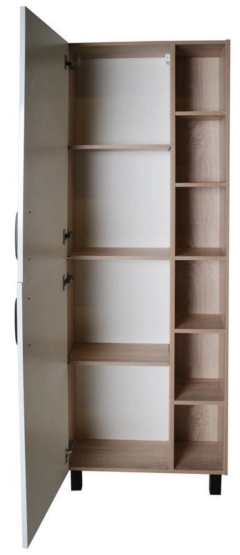 Пенал изготовлен из влагостойкого ЛДСП структурно имитирующего натуральное белое дерево. Фасады изготовлены из МДФ и покрыты глянцевой пленкой. Дверки плавного закрывания.