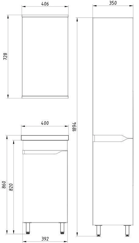 Пенал изготовлен в современном стиле с двумя дверками, с интегрированными в фасад ручками. В верхней части пенала размещены 2 полочки, в нижней части пенала 1 полка