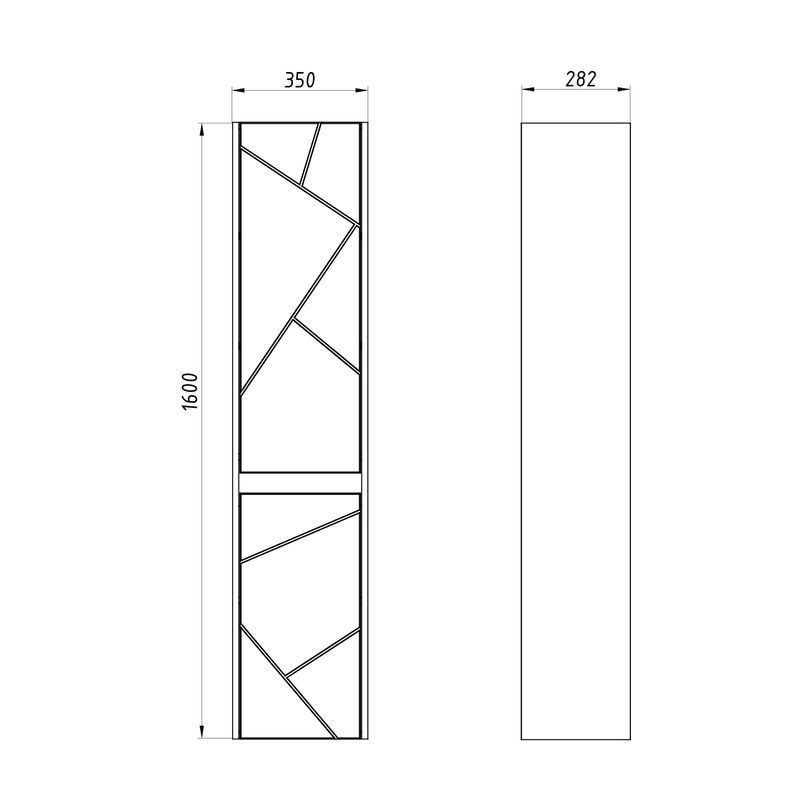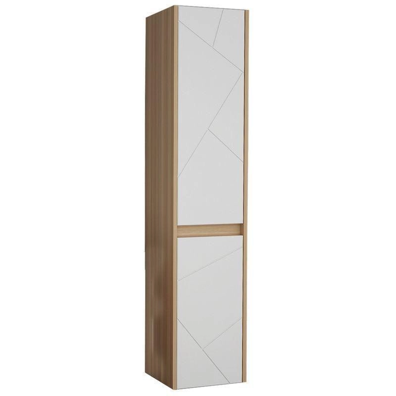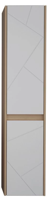 Пенал Диана изготовлен в современном стиле и сочетает в себе корпус из ДСП, имитирующее натуральное дерево и высокоглянцевые белые фасады с геометрическим рисунком.