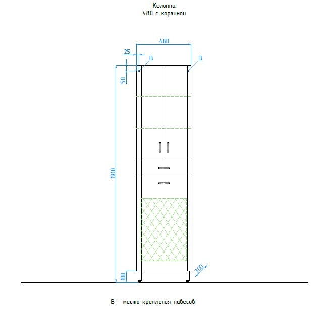 Качественные влагостойкие материалы: Корпус ДСП 16 мм. Торцы корпуса ПВХ 0,4 мм. Фасады МДФ 16 мм "Кроношпан"