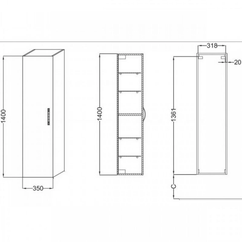 КОЛЛЕКЦИЯ :OLA РАЗМЕРЫ :35 x 30 x 140 см ВЕС :18.6 кг УСТАНОВКА : Подвесная ТИП МЕБЕЛИ: 1 дверца (реверсивный монтаж) с механизмом «плавное закрывание» ВНУТРЕННЯЯ ОТДЕЛКА: : Серый ВНУТРЕННЯЯ СИСТЕМА ХРАНЕНИЯ: : 1 фиксированная полочка по центру и 4 съемны
