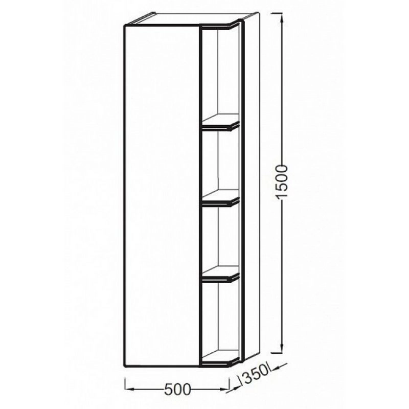 КОЛЛЕКЦИЯ :TERRACE РАЗМЕРЫ :50 x 35 x 150 см ВЕС :40 кг УСТАНОВКА : Подвесная ТИП МЕБЕЛИ: 1 дверца с механизмом «плавное закрывание» ВНУТРЕННЯЯ СИСТЕМА ХРАНЕНИЯ: : 2 деревянные фиксированные полочки, стеклянный разделитель, внутренние и внешние полочки ФИ
